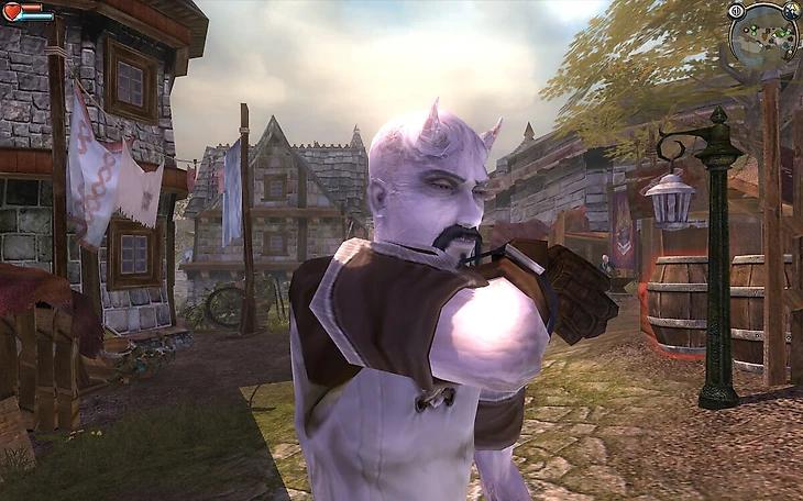 Не буду отмечать огромную вариативность действий в игре (рыбачить, жениться, красть и т.д.), а расскажу о системе выбора между добром и злом. Мы вольны сами решать, делать ли нам добро или зло, например, мы можем как пойти защитить Яблочный двор от грабителей, так и напасть на его вместе с ними. От поступков и выбора четкой системы морали меняется не так много, из основного: отношение к герою НПС, его внешний облик (добряк получит нимб, а злыдень – рога), выбор экипировки.
