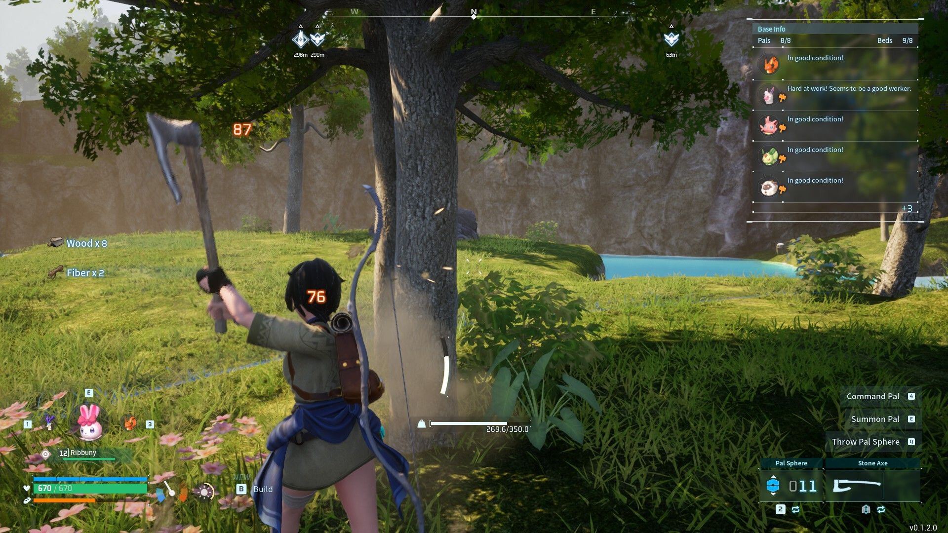 Однако этот метод уступает по скорости обычной вырубке деревьев, да и стоять на базе в игре с открытым и разнообразным миром совсем не хочется. С решением этой проблемы помогут Палы. У некоторых из них есть скилл лесоруба (Lumbering skill). Один из Палов с таким умением – Лифмунк (Lifmunk). Если на территории вашей базы есть лесопилка или деревья, то Пал начнет пассивно добывать дерево для вас. Хотя для этого его нужно будет найти и поймать.