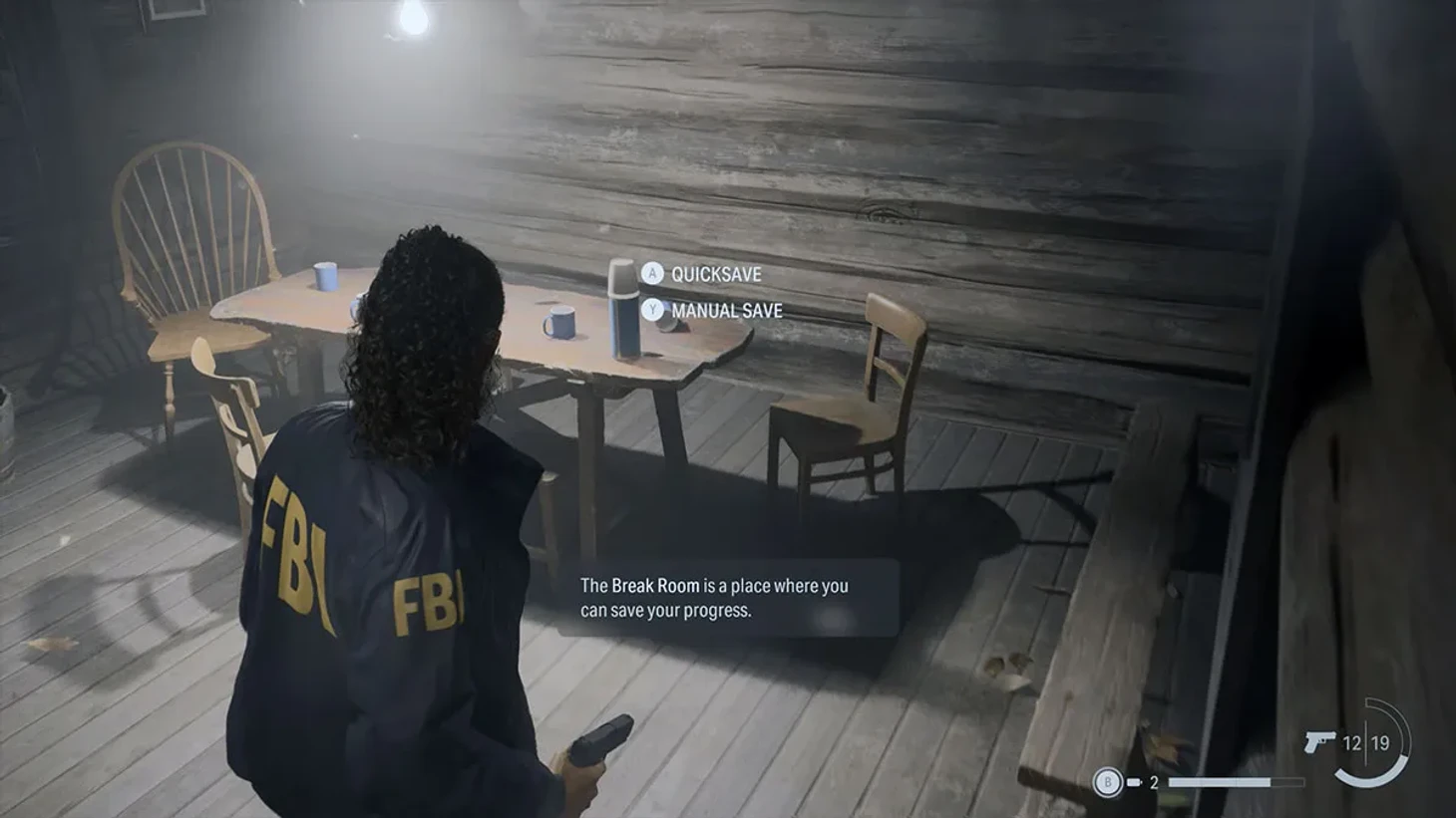 Мой любимый пример – прокачка оружия за Сагу Андерсон. Для этого нужно искать ланч-боксы с фрагментами текста. Вначале механика воспринимается как условность: собирай монетки, чтобы заработать на новую жизнь. Однако прокачка идеально вписана в логику мира игры: когда вы улучшаете оружие, Уэйк зачитывает страницу, объясняющую, почему у пистолета увеличился боезапас, а обрез наносит больше урона.