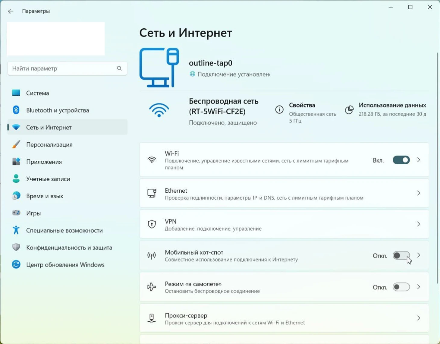 в параметрах ОС направляйтесь во вкладку «Сеть и Интернет». Включите там «Мобильный хот-спот»;