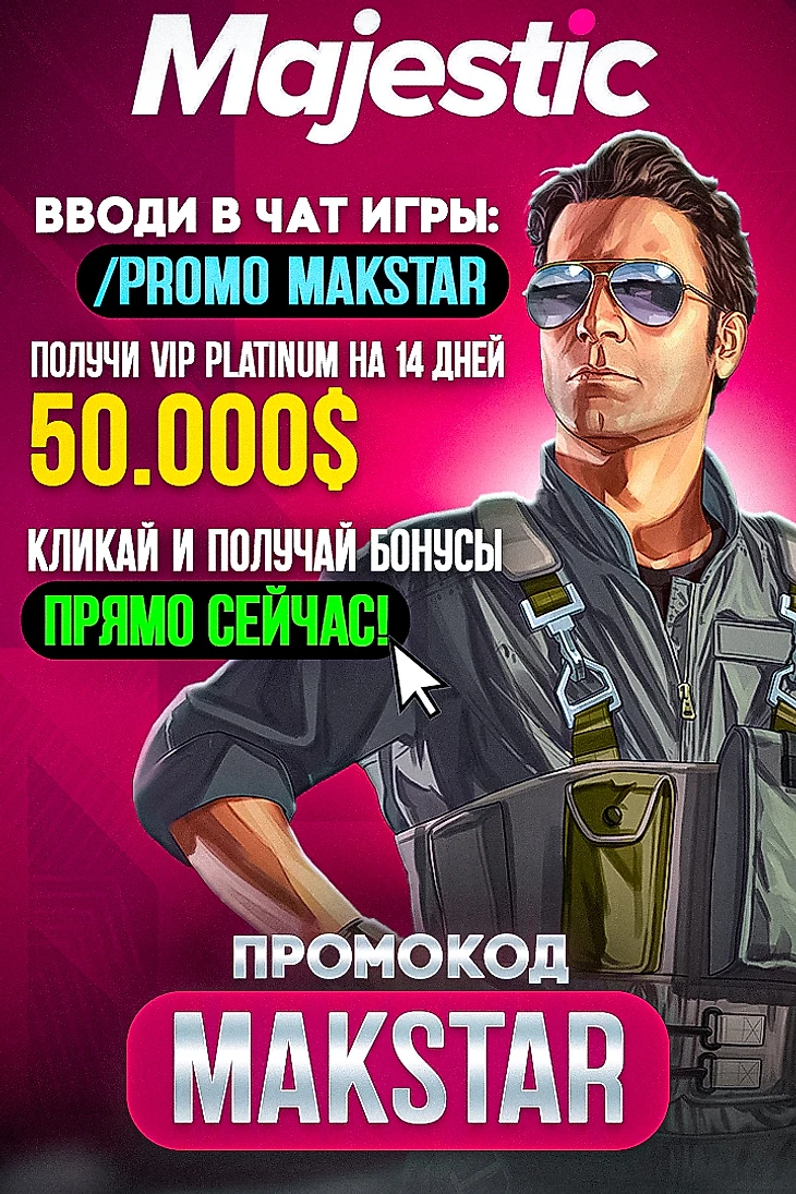 Данный промокод является одним из лидеров по активациям на Маджестик РП в 2023 году, а значит в 2024 году его популярность только возрастет! Отзывы игроков, которые активировали промокод «makstar» 99% положительные. Данный промокод проверен временем и тысячами положительных отзывов. Количество активаций - более 5.000 раз с 2022 по 2024 год.