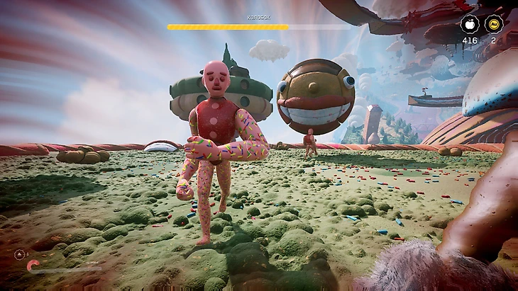 Сюрреалистический Колобок висит над ареной и сам по себе опасности не представляет. Главное, не подходите к нему – иначе получите урон.