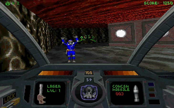 Descent – это серия шутеров от первого лица, в которых игрок управляет космическим кораблем и сражается с роботами-мутантами. Первая часть вышла в 1995 году, в ней 30 уровней, несколько боссов, секретные уровни, лут и бонусные временные усиления, дающие невидимость, неуязвимость или усиленное оружие. А еще в ней можно было не потеть над боссом ради улучшения, а просто ввести чит-код и получить необходимое усиление.
