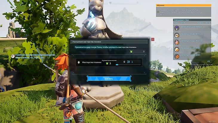 Если построите на базе большую статую и поднесете ей собранные вещицы, повысите навык ловли палов. Где искать статуэтки?