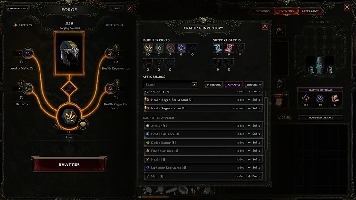 Потенциал – одна из важнейших характеристик каждого предмета. От него зависит, как сильно прокачивается клинок, броня, амулет. Чтобы улучшить вещь, откройте кузню, закиньте в нее материалы для крафта – и вскоре получите предмет с крутыми характеристиками. Также в кузне можно заменить бесполезное свойство подходящим.