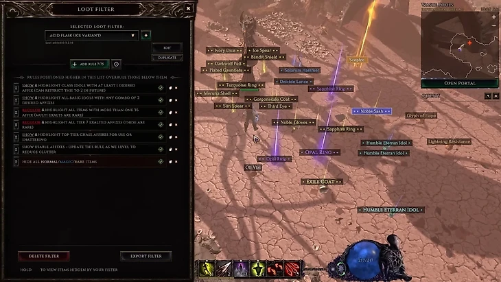 В Last Epoch удобная система фильтров. Если настроите их, копаться в выпавшей из мобов снаряге больше не придется. Интересуют только уникальные предметы выше 50 уровня? Значит, подсвечиваться будут лишь они, а разный хлам вы даже не увидите.