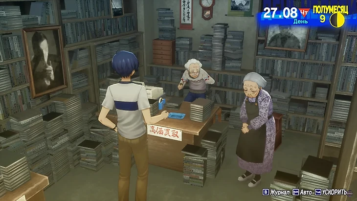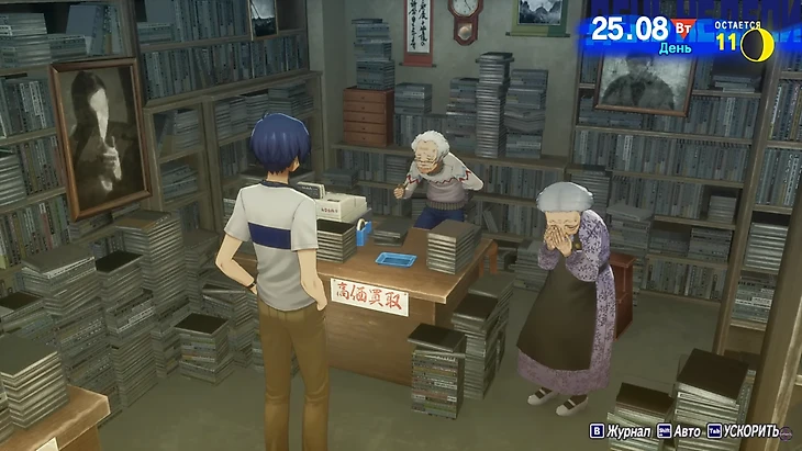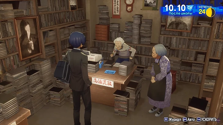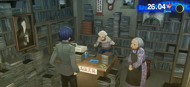 Посетив магазин подержанных книг в торговом центре. Вы познакомитесь с пожилой парой по Бункити и Мицуко, управляющими им. В разговоре они упомянут дерево хурмы за школой Гэккоукан.
