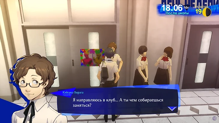 С 17 июня вы можете вступить в школьный художественный клуб. После этого социальная связь с Кэйсукэ начнется автоматически. Также присоединившись к клубу вы откроете доступ к социальной связи с Фуукой Ямагиси, одной из возможных девушек главного героя.
