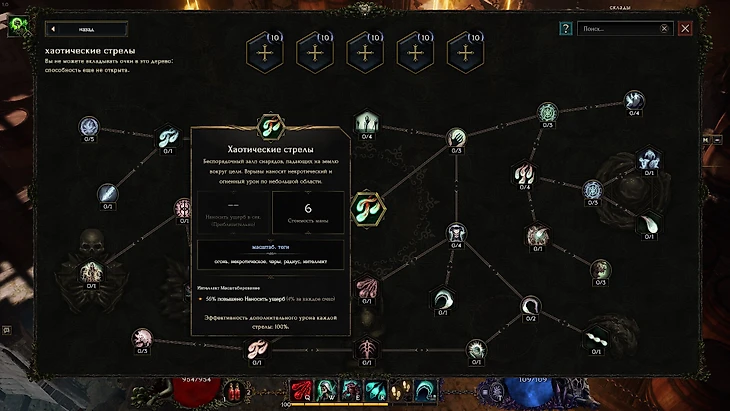 «Хаотические стрелы» и дополнительные навыки «Вынужденное возлияние», «Жнец хаоса», «Еще один недуг», «Багровые грезы», «Могила для двоих», «Терзание Алой тундры», «Проклятая кровь». Главная способность билда накладывает на врагов проклятие и восстанавливает HP;