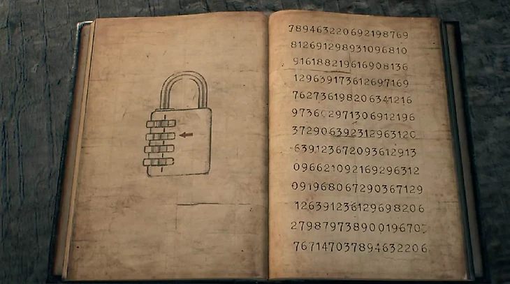 Во время обыска руин разрушенной гостиницы вы найдете сейф с замком. Чтобы его открыть, вас потребуется разгадать шифр при помощи дневника, который вы найдете рядом.
