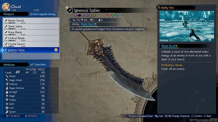 Гладкая сабля настолько хороша, что с ней можно пробежать всю игру, но в 11-й главе Клауд таки находит меч помощнее. Магматическая сабля находится на Северном хребте, когда вы с командой пробираетесь через гору Нибель.