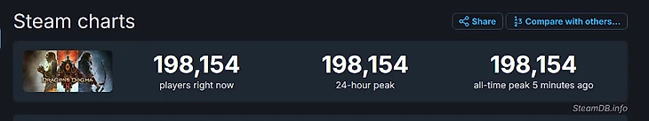 Несмотря на проблемы, максимальный онлайн в Dragon’s Dogma 2 составляет почти 200 тысяч человек.