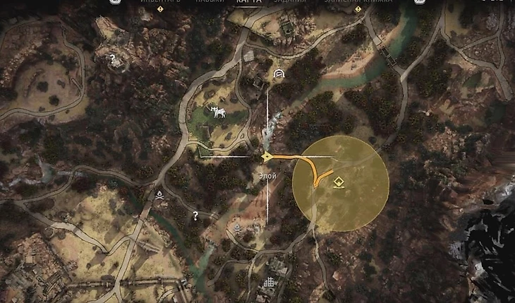 Доберитесь до следующего маркера в нескольких метрах к югу от того места, где мы разговаривали с охотником. Оказавшись там, активируйте визор, а затем, чтобы выделить следы. Следы начинаются именно там, где находится маркер квеста.