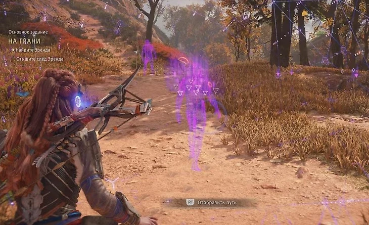 Следуйте по фиолетовым следам и силуэту, пока не найдете Эренда.
