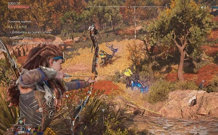 Как получите контроль над персонажем после кат-сцены, начните пробираться по маркеру задания, устраняя машины и собирая детали и ресурсы по пути. Вы доберетесь до развилки на пути, где игра позволяет вам выбрать, куда хотите направиться. Если пойдете направо, то войдете в поселение Скрежет горы. Если налево, то начнете искать Эренда.