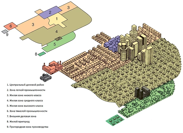 Если попытаться примерить эти теоретические параметры на наше игровое пространство, достаточно сложно указать на какие-то характерные черты, которые можно было определить хотя бы внешне и схематически. Найт Сити не имеет четкой плановой структуры - он скорее своеобразная сборная солянка, где нет четкого зонирования на определенные районы со своей целевой задачей.