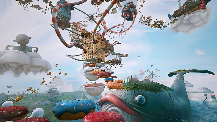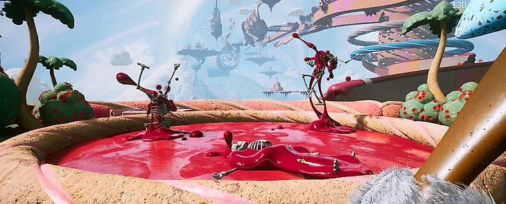 Делать упор на платформинг, присыпав все сладостями, пулями-конфетами и странными врагами – смелый ход. Получилось эдакое сладкое королевство со множеством островков-локаций и коридорных трасс. Однако это дополнение мне не зашло, совсем не мое это все... Вместо пуль тут из твоего розового автомата сыпятся конфетки, а пополнить здоровье можно, разбив печенье «Орешек» – это мне, кстати, пришлось по нраву. За монеты мы можем купить у огромной Тети Моти различные прикольные скины для нашего оружия. Монетки эти достать порой не так-то просто – нужно проявлять ловкость рук... В принципе, как и во всем DLC... Эх...