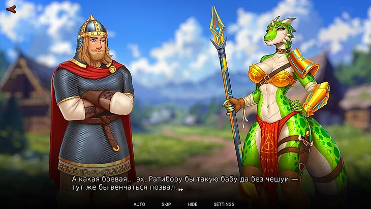 Нюанс в том, что после поражения ящеры-мужчины сдулись, потому женщины вынужденно окрепли. Они научились изящно размахивать копьем, набрали фантастическую форму, натянули откровенные наряды – и вознамерились отомстить русам. Вот только не хватаем им внимания энергичных мужчин, поэтому схватки с нашими богатырями не всегда заканчиваются кровопролитием.