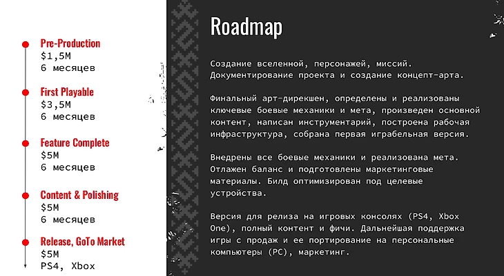 Опыт других успешных проектов доказывает, что у «Сайберия Нова» не было ни времени, ни денег, чтобы создать хоть сколько-нибудь качественную игру. Это понимали даже в самой студии: в первоначальной дорожной карте проекта, подготовленной еще в 2020 году, были совсем другие цифры: бюджет более $20 млн и срок больше двух лет.
