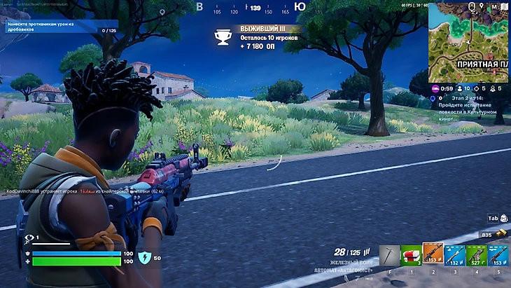 Динамичный геймплей «Фортнайта» прощает ошибки. Энергетический щит, аптечки и верткие дальние подкаты заметно повысили показатель Time to kill (время на уничтожение соперника), но игра не стала скучной: меня постоянно веселили забавные мини-задания, которыми напичкана карта. Часто за ними я забывал про других игроков и главную цель матча – дойти до финала.