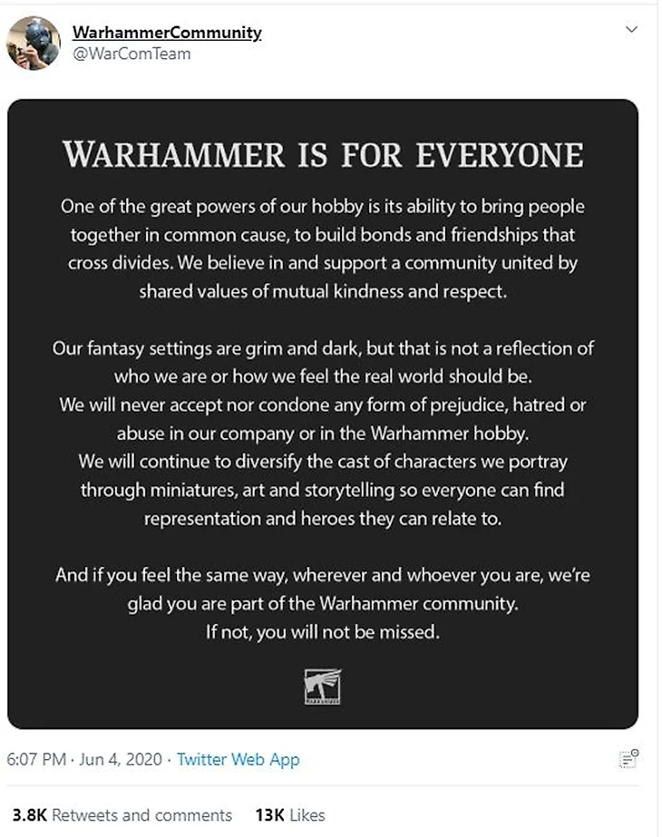 Warhammer 40,000 – это огромная и старая вселенная. И там, несмотря на всю мрачность, есть место для каждого. Я прочитал очень много книг по вселенной и знаю, о чем говорю. Там есть Братство мужчин, измененных на генетическом уровне и сделанных идеальными воинами. Казалось бы, не слишком маскулинно? Но на одном уровне с воинами-полубогами сражаются и обычные люди. Например, капитан Лотара Саррин, командующая флагманом самого агрессивного легиона Астартес. И, на мой взгляд, такие персонажи, намного более ценны для репрезентации, чем просто картонка с надписью: «Я свободна и сильна».