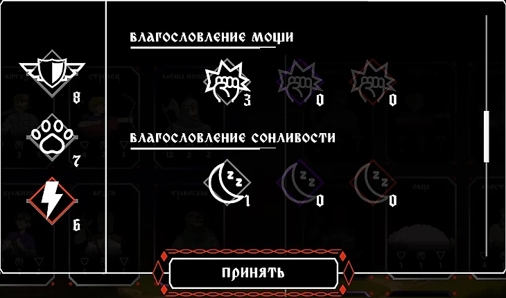 Благословения: одноразовые способности, дающие некоторые преимущества, которые можно использовать во время своего хода.