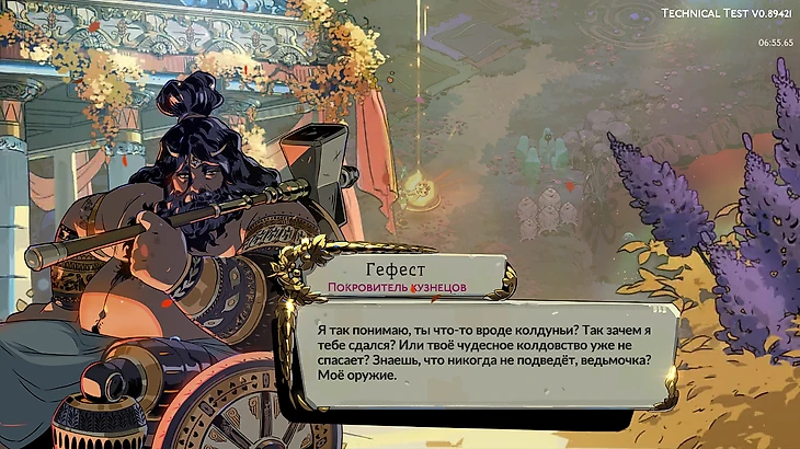 Очень много внимания уделяется Хроносу и самой Мелиное. Если первый – это ультимативный враг со способностью к управлению временем, которого хотят убить (в сейвзоне есть даже возможность нажать новую опцию диалога – «Поприветствовать», где Мелиноя и ее собеседник могут обменяться фразой «Death to the Chronos»), то вот вторая – это уже совершенно иной образ. В отличие от своего наглого и веселого брата, Мелиноя страдает от неуверенности, но имеет железную волю и стальное желание спасти семью. Потому первый босс (и единственный в плейтест-стадии) – ее наставница Геката.