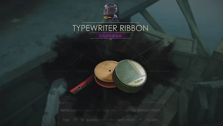 Во втором акте у доков пройдите к ящикам, где получите ключ от крана. Идите к воде, а потом поверните налево, направляйтесь по доскам к ящикам. В тупике будет чернильная лента.