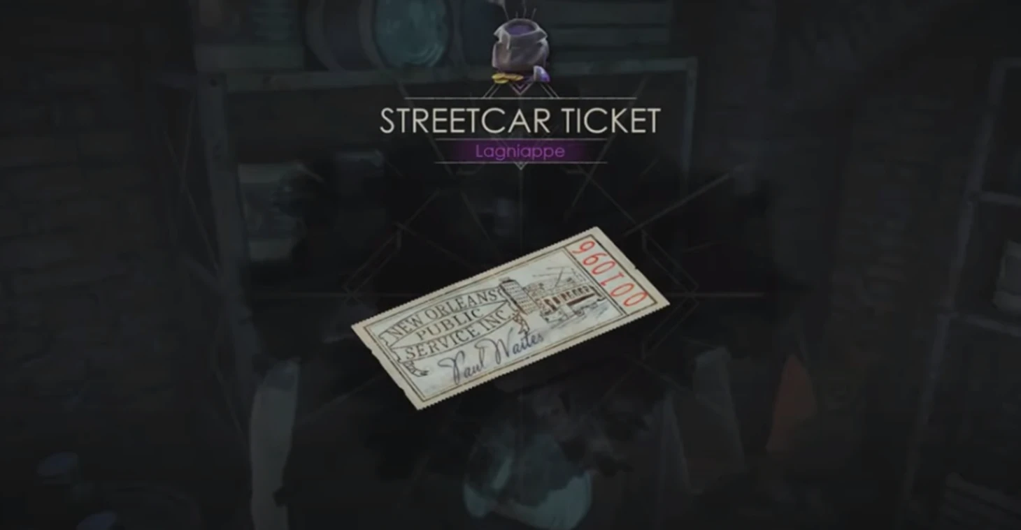 В первой главе подойдите к лестнице, которая ведет из подвала на первый этаж, но не поднимайтесь, а пройдите вправо к решетке. Откройте первую, вторая будет закрыта, но справа от нее на стеллаже лежит трамвайный билет.