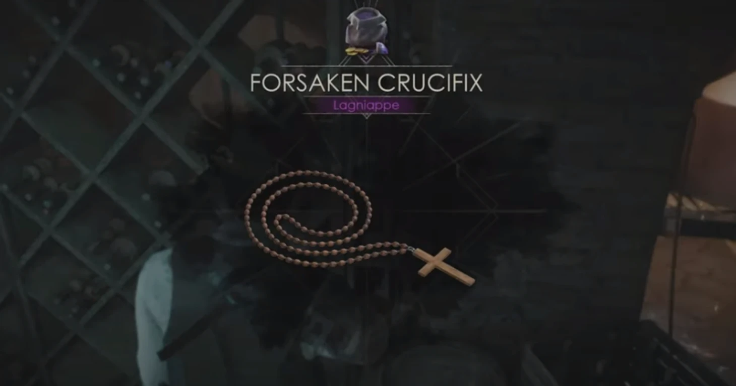 Во второй главе в погребе для вин отключите электричество и открутите вентиль. В луже вы найдете забытое распятие.