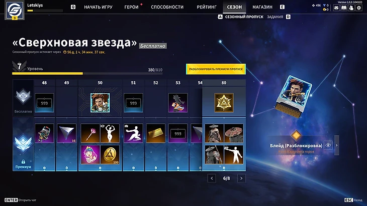 А как быть с боевым пропуском? Бесплатный батлпасс безобразно унылый, и открывать его хочется только ради нового персонажа Блэйда – он прячется аж на 50 уровне. Либо заплатите 600 рублей за нормальный боевый пропуск – тогда среди призов появятся классные скины, а Блэйд откроется быстрее.