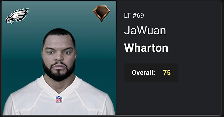 6) JaWuan Wharton, LT, PHI, OVR 73-75, Normal – Nah.