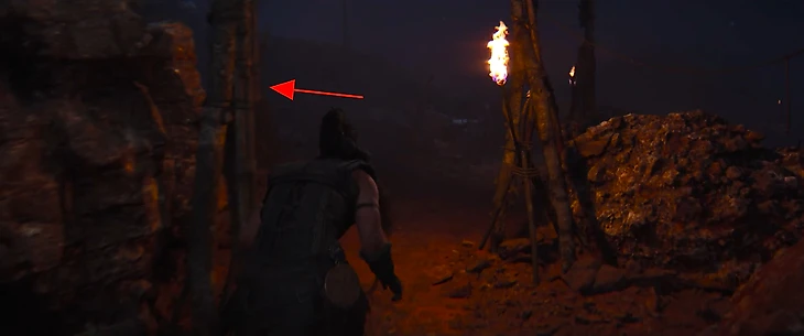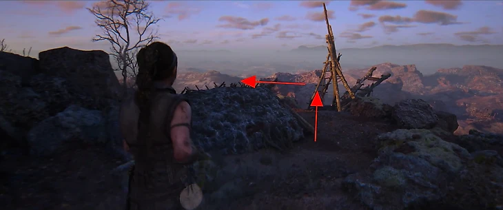 Следуя за Фаргримом и Торгестром, вы выйдете к открытому полю. Двигайтесь влево (в противоположном направлении от деревни), и вы увидите тотем за разрушенным домом. Будьте внимательнее, ведь камни и кусты могут скрыть его местонахождение.