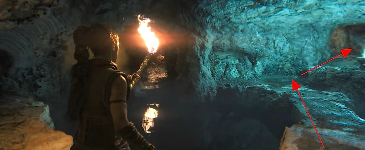 После прохождения головоломки, где ваш факел гаснет от воды, спуститесь направо и перейдите мост. После этого войдите в туннель справа от вас. Продолжайте двигаться прямо и остановитесь, когда увидите тотем в нескольких метрах от вас. Спрыгните вниз и направляйтесь к камню знаний, чтобы взаимодействовать с ним.
