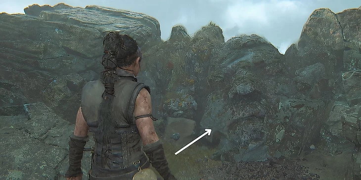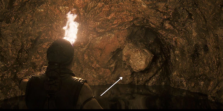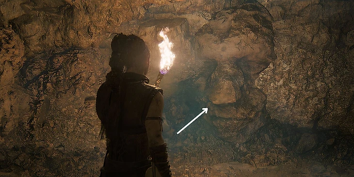 Восьмое лицо можно найти практически сразу после начала новой главы. Как только вы вошли в пещеру, продолжайте двигаться дальше. Свод пещеры будет опускаться. Как только Сенуа начнет пригибаться из-за слишком низкого свода, вы увидите восьмое лицо – оно будет спрятано в стене по левую сторону от игрока.