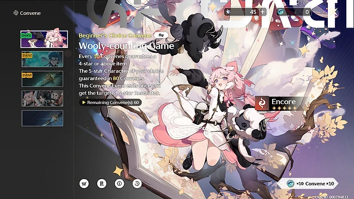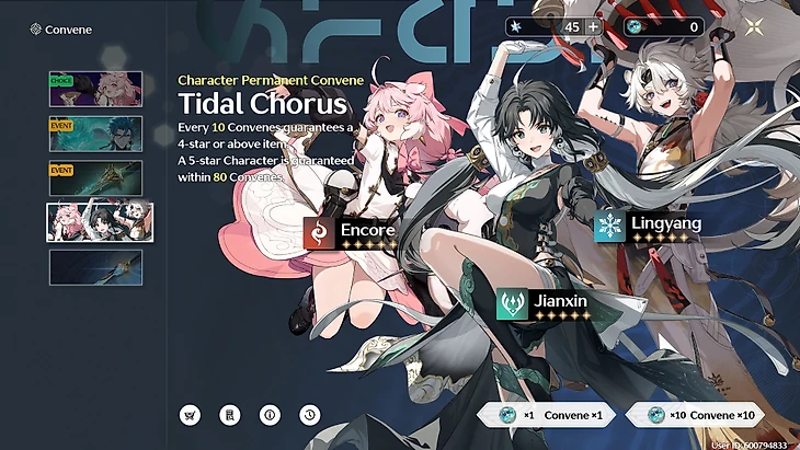 Novice Convene (баннер новичка): за 40 стандартных круток можно сделать 50 созывов и гарантированно получить одного пятизвездочного стандартного персонажа и как минимум пять четырехзвездочных или созвездий для них.