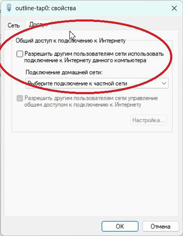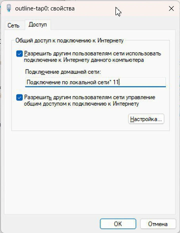 Вернитесь в «Сетевые устройства», найдите подключение с названием VPN, во кладке «Разрешить другим пользователям Сети использовать подключение к Интернету» выберите локальную сеть, появившуюся при раздаче интернета на консоль. Нажмите «ОК».