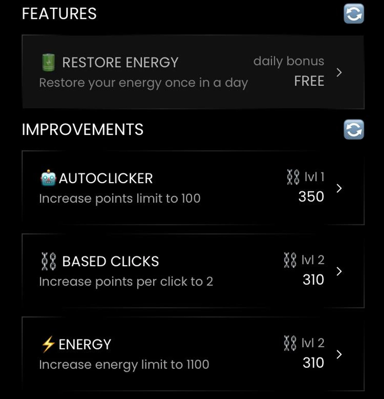 Во вкладке Boost также есть усиления. Здесь вы можете улучшить скорость получения монет и количество энергии. Вкладывайтесь в бусты, чтобы процесс стал более продуктивным.