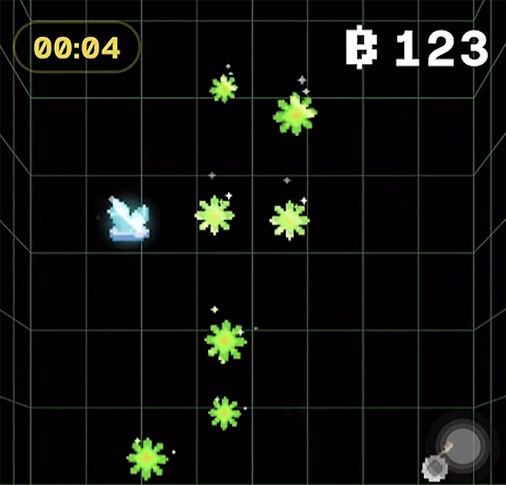 Drop game. 1 игра стоит 1 билет. Суть игры – ловить зеленые снежинки. У вас есть 30 секунд, чтобы поймать как можно больше. Собранные снежинки будут переведены в ваш баланс Blum Points. Помимо зеленых снежинок, в игре есть синие кристаллы, останавливающие время на несколько секунд. Их стоит ловить всегда. Также есть бомбочки, снимающие 100 баллов, на которые лучше не кликать.