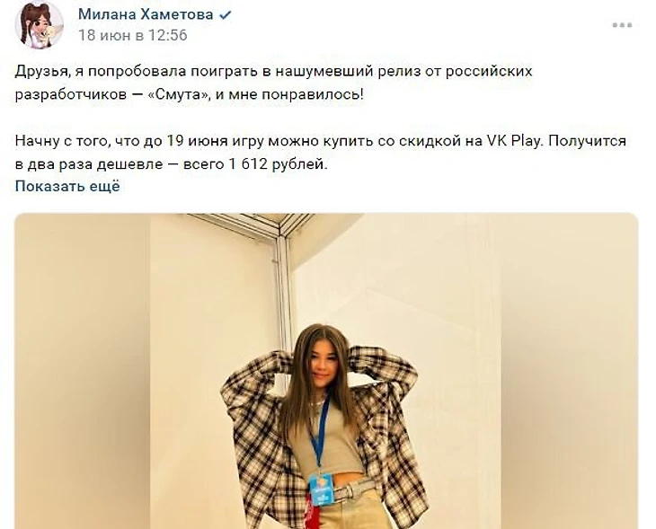 Поэтому ответ очевиден: реклама у крупных медиаперсон даст «Смуте» огромный охват новой аудитории. Правда, ее эффективность вызывает вопросы – вряд ли среди подписчиков Ольги, Камилы и других много геймеров. На низкую заинтересованность аудитории, к примеру, указывают комментарии под публикацией Валиевой – там игра практически не упоминается.