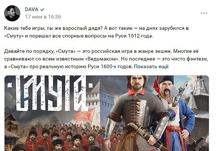 «Смута» – это праздник российского геймдева. Прекрасно, что сам проект случился. То, что он случился при поддержке государства, – прекрасно вдвойне. Одни не испугались деньги дать, другие не испугались деньги взять, и продукт получился».