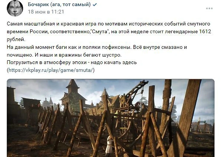 12 июня вышел очередной крупный патч, а игра получила первую скидку в честь Дня России. Теперь цена – 1612 рублей. Это событие заинтересовало не только поклонников «Смуты», но и популярных медиаперсон: певица Ольга Бузова, фигуристка Камила Валиева, дизайнер Артемий Лебедев и другие прорекламировали «недавно вышедшую обновленную «Смуту».