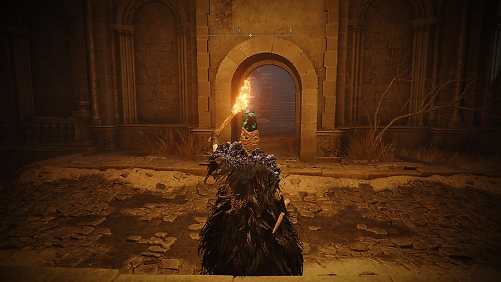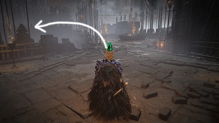 Там начнется сюжетное вторжение огненного рыцаря Квилайна. За первую победу над ним дадут эмблему священного похода – этот талисман увеличивает урон на 15% (10% в PvP) после победы над врагом на 20 секунд. Сзади дерева можно забрать Пепел войны: Скорбный вопль.