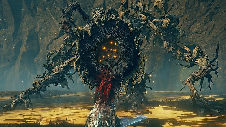 У Воплощения Древа Упадка всего 7,560 очков здоровья. А потом 13,608. А потом еще 12,403. Босс перерождается дважды в ходе сражения и каждая его итерация – это новая фаза с обновленным мувсетом и новой полоской ХП. Атаки босса не наносят много урона, но многие накапливают эффект кровотечения, способный неожиданно ваншотнуть во время боя. Воплощение уязвимо к огню и магии, и идеальным выбором оружия станут парные мечи Релланы.