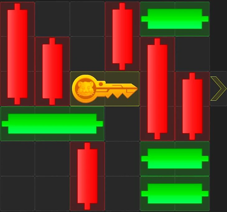 Каждый день в 23:00 по московскому времени в Hamster Kombat обновляется мини-игра. В ней вы можете увидеть золотой ключ с изображением хомяка, а также два вида свечей – вертикальные (красного цвета) и горизонтальные (зеленого цвета). Цель игры – передвинуть свечи так, чтобы ключ пошел ровно по центру. На выполнение головоломки дается 40 секунд. При неудачной попытке следующая дается через 1,5 часа. За выполнение задания вы получите один ключ.