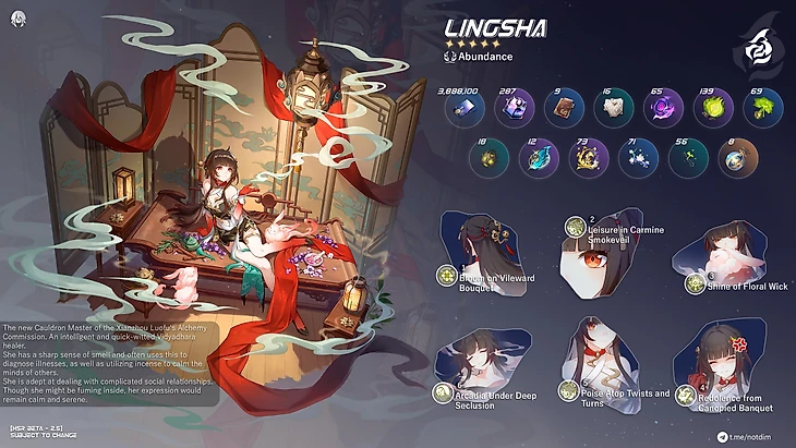 О ключевой истории: Ее история (лор) повествует о видьядхаре по имени Дань Чжу, ученице изгнанной Мастера котла Юньхуа. После несправедливого смещения наставницы и погружения в мир заговоров она сменила имя на Линша, покинула Лофу для обучения на Чжумине и вернулась спустя годы, чтобы занять пост Мастера котла, будучи полной решимости исправить пороки Комиссии изнутри.