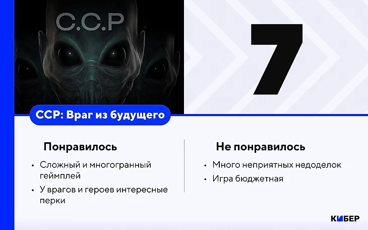 Не каждый XCOM-like заслуживает внимания. Взять западную Capes, которую делали с издателем, приличным бюджетом и командой в 25 человек. Игре все равно не хватило глубины, на пятом часу она полностью выдыхается. А «ССР: Враг из будущего» в этот момент только раскрывает карты, подкидывает реально интересных врагов, награждает крутыми способностями. Вот почему рано или поздно я прорвусь сквозь хардкор и добью игру.