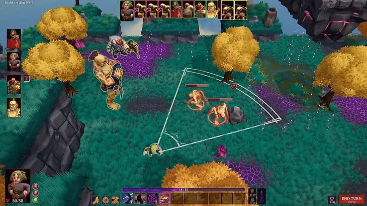 В основе геймплея – пошаговые бои. Герои располагаются на арене и по очереди бьют друг друга. В каждом раунде можно занять позицию получше и потратить очки действия на атаки – на одну сильную или, например, среднюю и толчок. Баффы и дебаффы тоже на месте: подожгите, ослепите и ошеломите врагов или усильте своего бойца.