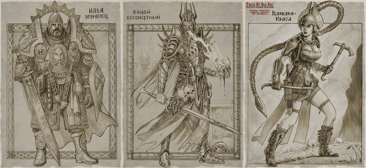 «Сказки Старой Руси» начались с рисунков, где сказочных героев вроде Добрыни Никитича и Ильи Муромца переосмыслили на фэнтезийный лад. Образы заворожили многих, поэтому «Сказки» завирусились и переросли во франшизу с артбуками, книжным циклом и игрой от 1С Game Studios. Успех не удивляет, ведь раньше художник Роман Папсуев официально иллюстрировал персонажей «Игры престолов» и получал респекты от Джорджа Мартина.