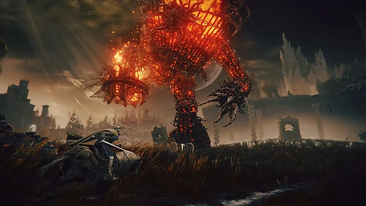 Итак, потрогав иссохшую руку Микеллы, торчащую из кокона, мы отправляемся в Царство Теней. Атмосфера смерти и безысходности царит здесь на каждом шагу, грусть и тоска пронизывает все вокруг: множество крестов и надгробий, а еще множество ужасных существ, которые затаились и поджидают нашего героя. Ну и, конечно же, в игре у нас будут как самые обычные, так и эпичные замесы с драконами! Одной из наших бед будут огромные величественные ходячие жаровни – Великаны Печи, поджигающие все вокруг, но и на них можно найти управу.